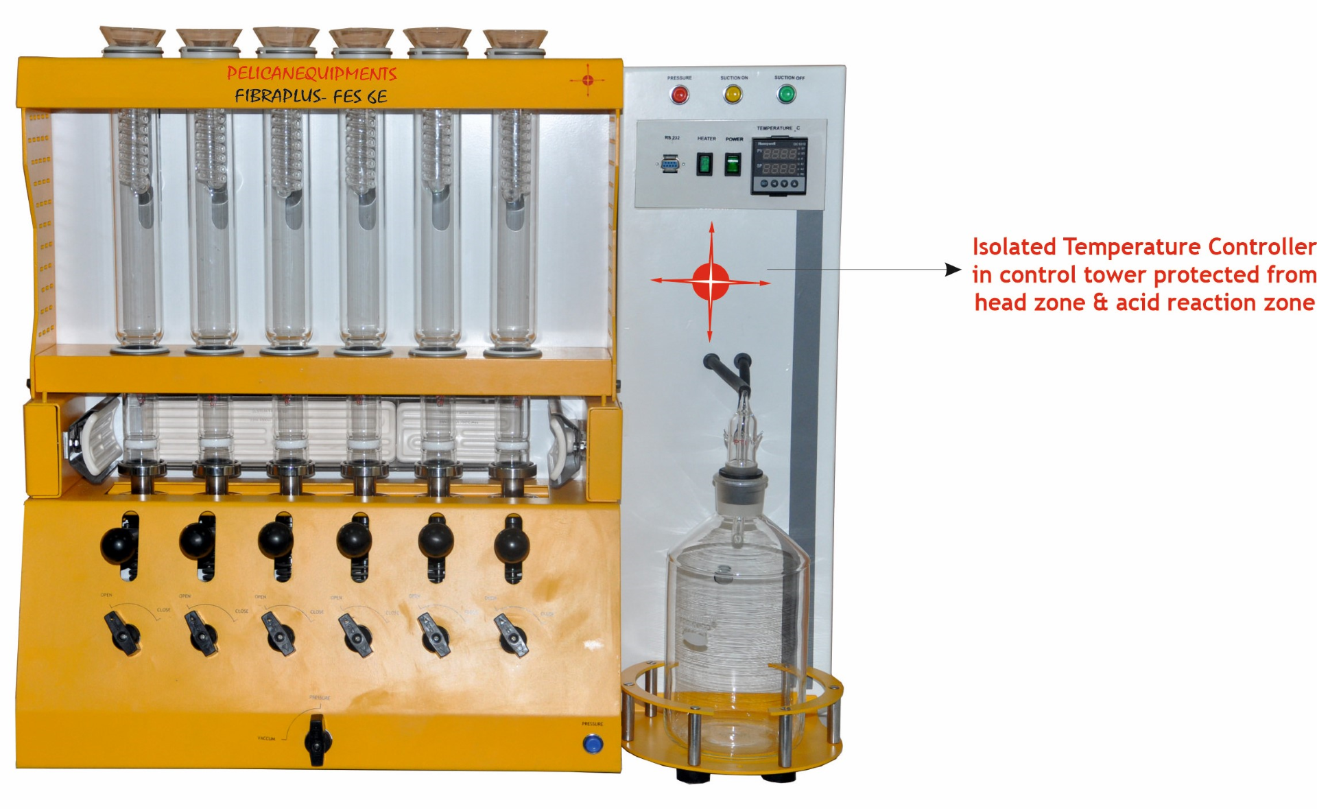 Application: System for determination of Crude fibre, Neutral Detergent Fibre, Acid Detergent Fibre, ADL, Cellulose, Hemicelluloses, Lignin & related parameters in plant materials compound feed, food etc. Fibre Determination in accordance with weende, van Soest and other recognized methods (Safe and Environmental friendly).